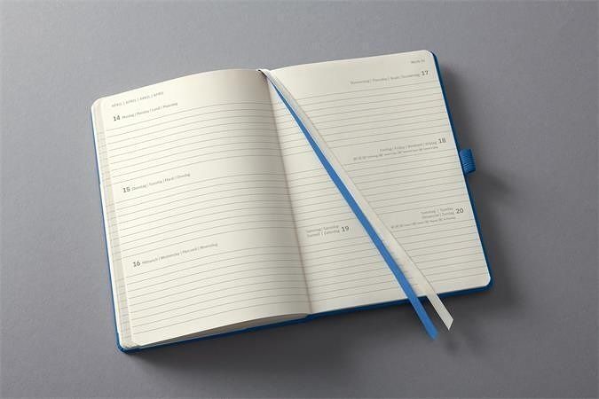 Stylový diář je uzavíratelný na gumičku, vybavený praktickou papírovou kapsou na zadní straně a poutkem na pero. Jazyk: D/GB/F/NL (ne v CZ)