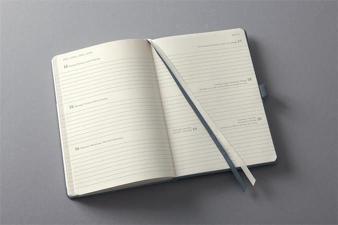 Stylový diář je uzavíratelný na gumičku, vybavený praktickou papírovou kapsou na zadní straně a poutkem na pero. Jazyk: D/GB/F/NL (ne v CZ)