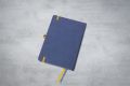 Diář "Linescape" je uzavíratelný na gumičku, záložka se stuhou a poutkem na pero.