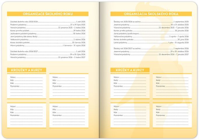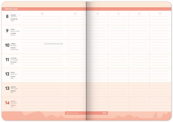 Praktický diář pomůže při plánování aktivit členů rodiny a chodu celé domácnosti. Rozdělen je do týdnů, kde můžete sledovat a do připravených sloupců zapisovat úkoly jednotlivých rodinných příslušníků. Nechybí ani rozvrh hodin pro školáky, nákupní seznamy a prostor pro všechny další důležité poznámky.