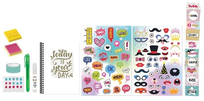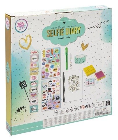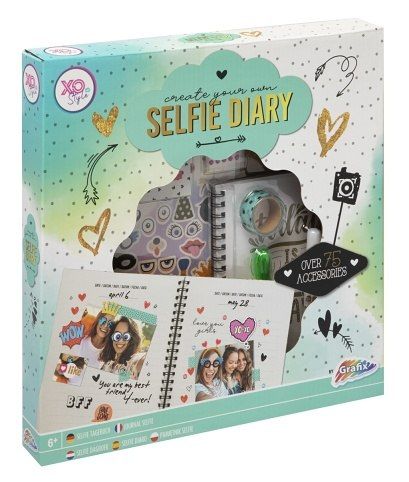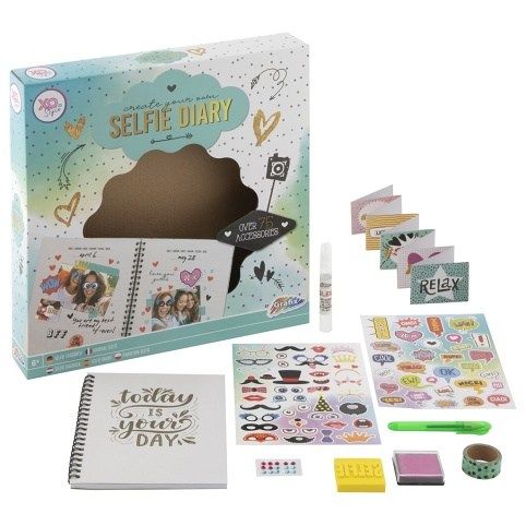 Diář „Selfie“ – máte už celou sbírku krásných selfie? Pak je odteď můžete sbírat do kreativního selfie diáře. V tomto diáři máte dostatek místa pro všechny vaše fotografie. Pomocí oboustranné pásky a lepidla snadno nalepíte fotografie do diáře. Ozdobte stránky a fotografie vtipnými samolepkami, selfie razítkem a veselými texty. Součástí diáře jsou samolepky, razítka, samolepící kamínky, tužka a další.