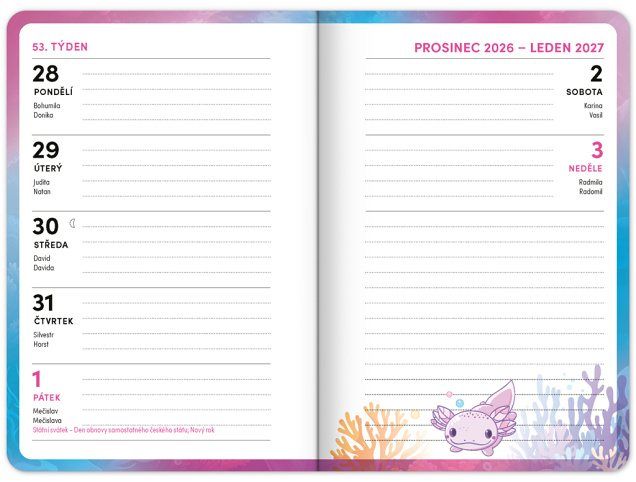 Diář školní Axolotl (září 2026 – prosinec 2027), 9,8 x 14,5 cm / PGD-36960