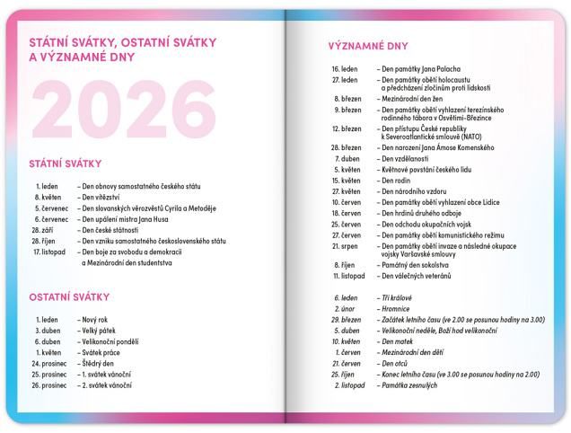 Diář Školní Růžový (září 2025 – prosinec 2026), 9,8 x 14,5 cm / PGD-35691