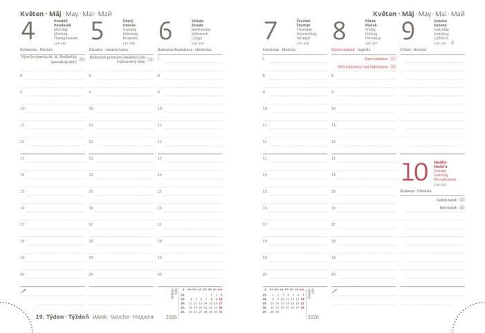 Diář týdenní B6 Vario Round s gumičkou 2026 / 16,5cm x 12cm / DV433-25-26