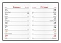 Informační stránky obsahují: osobní záznamy, tabulkový kalendář aktuálního roku a následujícího roku, místo na poznámky
