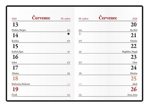 Diář týdenní - Hynek - PVC - černá 2026 / 8cm x 5,75cm / BTH1-2-26