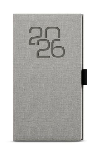 Kapesní týdenní diář z příjemného materiálu v šedé barvě a s moderní ražbou roku. Trendy a praktický doplněk do každé kapsy. Diář má velký prostor pro poznámky a plánování.