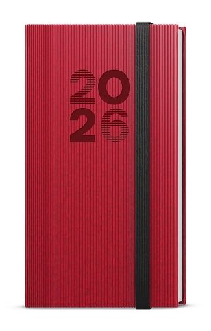 Kapesní týdenní diář v červené barvě ze strukturovaného materiálu a s gumičkou. Jednoduchost, která neomrzí. Moderní doplněk do každé kapsy. Diář má velký prostor pro poznámky a plánování.