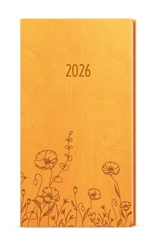 Kapesní týdenní diář v okrové barvě je vyráběný z jemné hladké vivelly s efektní ražbou s motivem Květin. Trendy a praktický doplněk do každé kapsy. Diář má velký prostor pro poznámky a plánování.