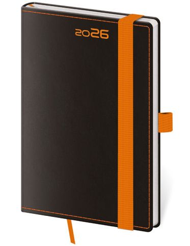 Diář týdenní kapesní Black Orange s poutkem na propisku 2026 / 14cm x 9cm / DB436-5-26