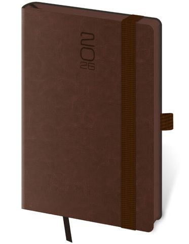 Diář týdenní kapesní Memory s gumičkou - tmavě hnědá 2026 / 14cm x 9cm / DM436-1-26