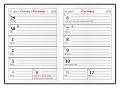 Jednoduchý a praktický týdenní diář vyrobený z jemného hladkého materiálu s polomatným povrchem černé barvy. Ideální pro každého, kdo si oblíbil měkkou šitou vazbu.