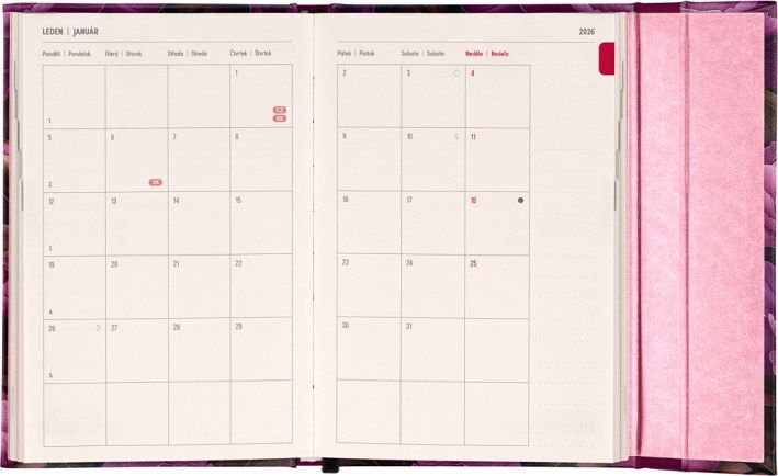Týdenní diář s praktickým magnetickým uzavíráním je ideální volbou pro ty, kteří chtějí mít své plány přehledně pod kontrolou. Horizontální rozložení s českým a slovenským kalendáriem ve verzi týden na dvou stranách s prostorem pro poznámky. Součástí jsou praktické měsíční přehledy, ideální pro plánování dovolených či prázdnin, a také seznam českých a slovenských svátků a jmenin.