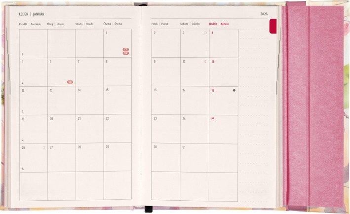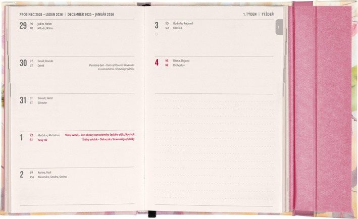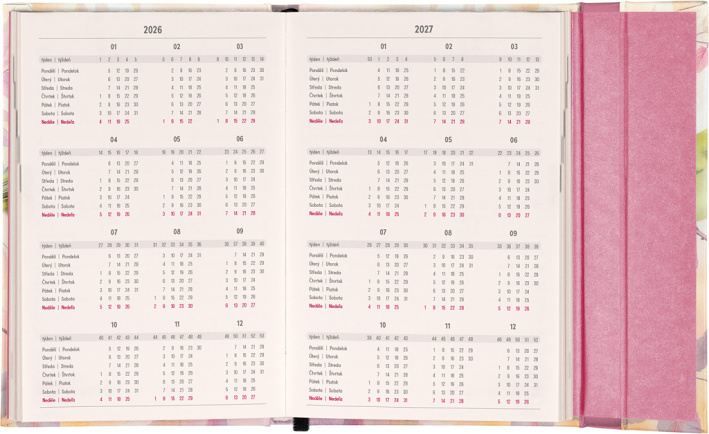 Týdenní diář s praktickým magnetickým uzavíráním je ideální volbou pro ty, kteří chtějí mít své plány přehledně pod kontrolou. Horizontální rozložení s českým a slovenským kalendáriem ve verzi týden na dvou stranách s prostorem pro poznámky. Součástí jsou praktické měsíční přehledy, ideální pro plánování dovolených či prázdnin, a také seznam českých a slovenských svátků a jmenin.