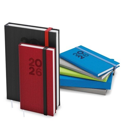Týdenní diář formátu A5 vyrobený ze strukturovaného materiálu v zelené barvě a s gumičkou. Oblíbená grafika vnitřního bloku Vám pomůže účelně plánovat Vaše dny.