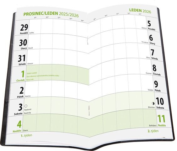 Diář týdenní - zelený 2026 / 9cm x 15cm / DT195