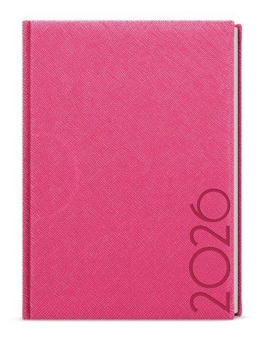 Týdenní diář v růžové barvě se strukturovaným povrchem. Moderní doplněk v oblíbeném formátu. Diář má velký prostor pro poznámky a plánování.