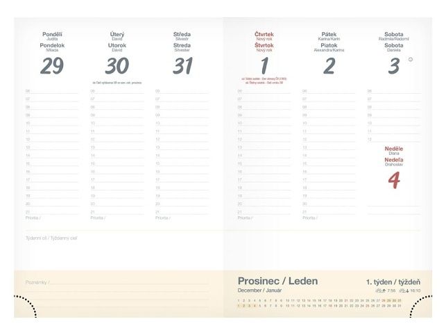 Diář týdenní T805 PU soft potištěné 3 2026 / 20,5cm x 14cm / 7781471