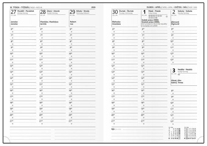 Týdenní diář A4 vyrobený z jemného materiálu - vivelly. Diář je velmi praktický a pomůže Vám efektivně naplánovat Váš týden.