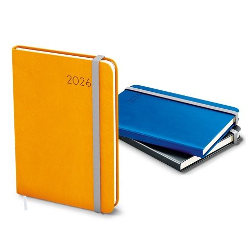 Diář s týdenním kalendáriem na jedné straně a na druhé straně s prostorem na poznámky. Desky jsou ohebnější, mají moderní ražbu, kulaté rohy a gumičku.