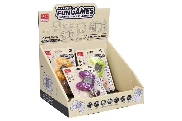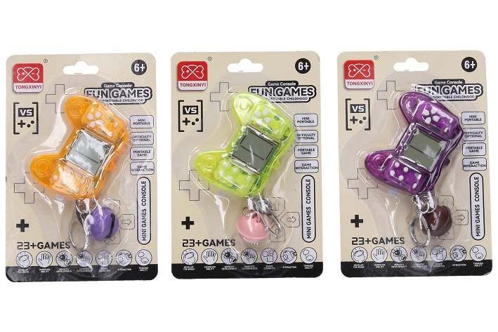 Digitální herní konzole 23her. Velikost 6cm. baterie 2xAG13 součástí. 18 ks display box.