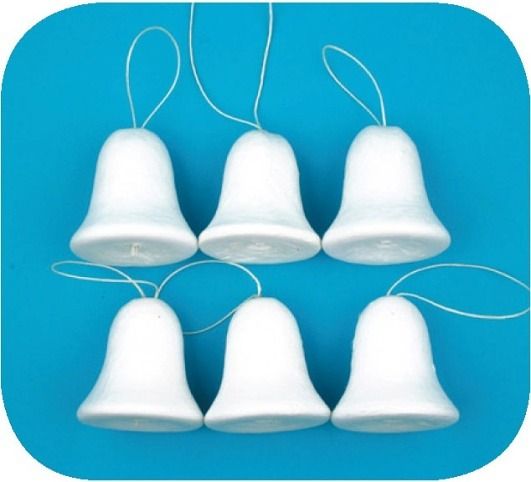 Dílky z buničiny bílé zvonečky k dekorování na zavěšení 5cm,6ks v sáčku