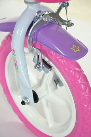 dětské kolo 12", košík, plná pneumatika, 1 přední brzda, stálý převod - tzv. "furtšlap", pomocná kolečka, hmotnost kola 6,5 kg, doporučená výška uživatele 87-110cm, nosnost 40 kg