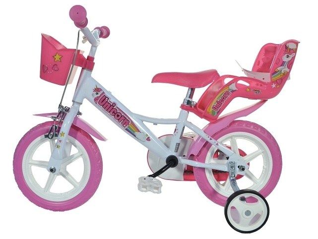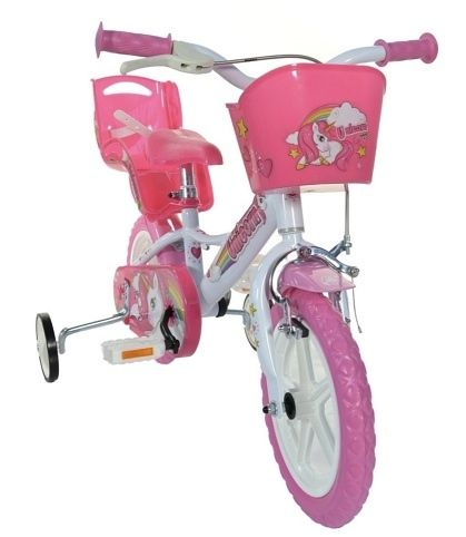 Dětské kolo DINO Bikes - Dětské kolo 12" se sedačkou pro panenky a košíkem Jednorožec. Kolo Dino Bikes Italy je pro malé cyklisty v barevném provedení s obrázky. výrobce Dino Bikes Italy