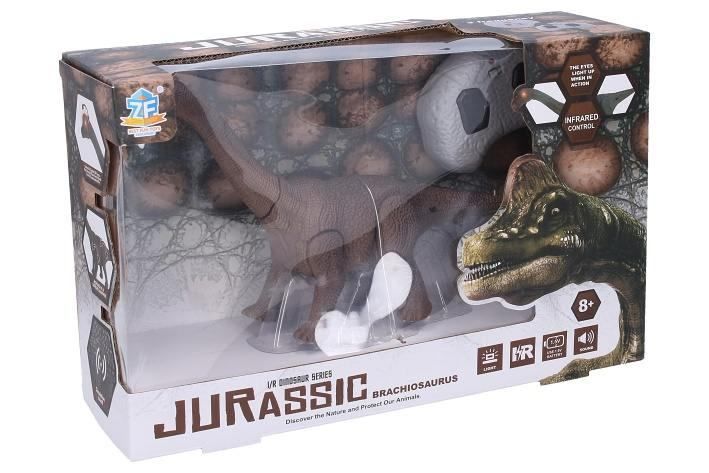 Dino Brachiosaurus RC na dálkové ovládání. Velikost 18 x 18 x 7,5 cm. IR ovladač. Svítící oči a otevírací tlama. Pohyb dopředu a dozadu. Výběr 3 frekvencí (A, B, C).