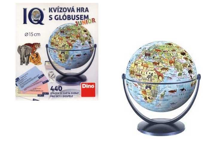 Hra obsahuje vedle kvízových karet i malý dětský glóbus s obrázky zvířat. Glóbus má průměr 15 cm.