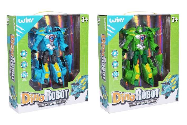 Dino robot. - český obal. Rozměry 17x3x19 cm. 2 varianty - modrá, zelená.