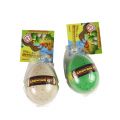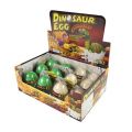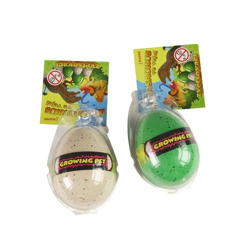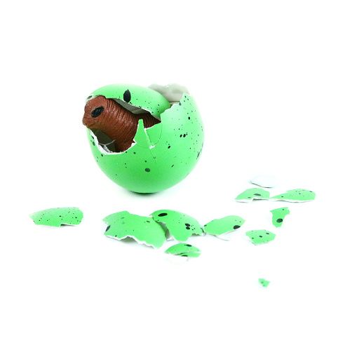 Vložte vejce do nádoby. Nádobu naplňte vodou tak, aby bylo vejce celé pod vodou. Po 12-24 hodinách začne vejce praskat. Pokud klesne hladina vody, vodu dolijte. Po 48 hodinách je dinosaurus vylíhnutý.