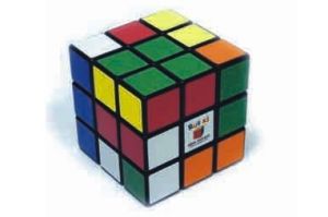 Nejznámější matematický hlavolam v klasické podobě 3x3x3. Kostku sestavenou z barevných čtverců je možné otáčet kolem tří os, čímž je možné dosáhnout až čtyřiceti tří miliard barevných kombinací.