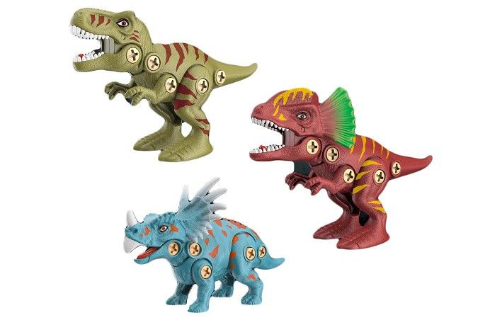 Dino šroubovací set s elektrickým šroubovákem. Velikost dinosaurů 20 cm. Sada obsahuje 3 dinosaury, elektrický šroubovák (17x12 cm), a manuální šroubovák. Návod na sestavení je součástí balení. Baterie 2xAAA, nejsou součástí balení.