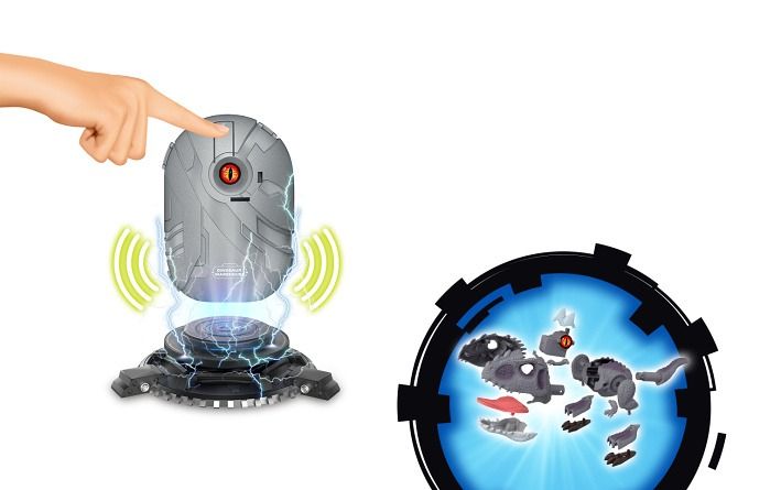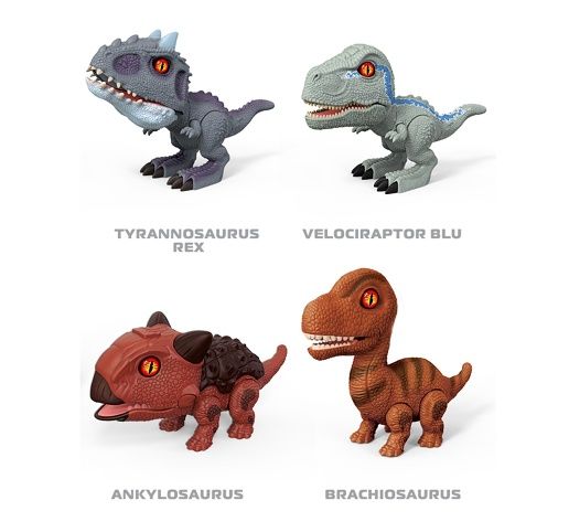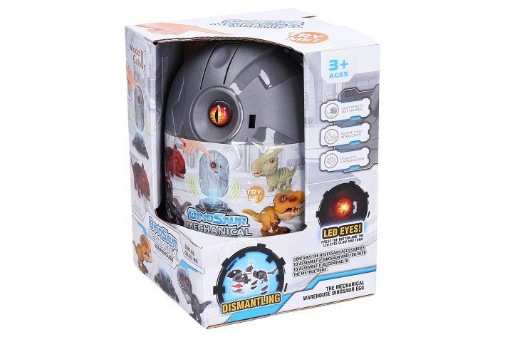Dino ve vajíčku skládací s efekty. Vajíčko obsahuje díly na složení dinosaura a návod. Součástí jsou oči do nichž se vkládají baterie - svítí a vydávají zvuk. Oči jsou jedním z dílků skládačky dinosaura. 4 varianty - tyrannosaurus, velociraptor, ankylosaurus, brachiosaurus.
