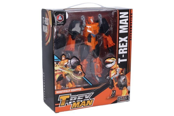 Dinorobot T-REX žlutý. Velikost 19,5x14 cm. Robot, transformuje se na dinosaura T-Rexe. Návod na složení na obalu. kov/plast