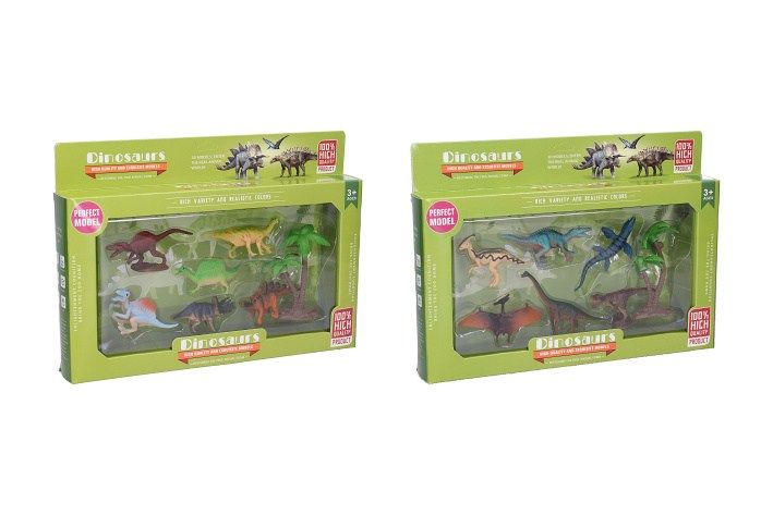 Dinosauři figurky set 7 ks. Přesné rozměry 9x5x1 cm. Obsah balení - 6 dinosaurů, 1x palma. 2 varianty