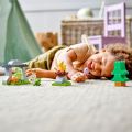 Vaše ratolesti se mohou přidat ke Claire Dearingové z Jurského světa a pomoci jí pečovat o 3 dinosauří mláďata. Stavebnice obsahuje triceratopse v jeskyni, pteranodona v hnízdečku a brachiosaura s dlouhým krkem, který rád okusuje listí ze stromu. Děti si při hraní s dinosaury v jejich přirozeném prostředí osvojí jemnou motoriku a emoční inteligenci.