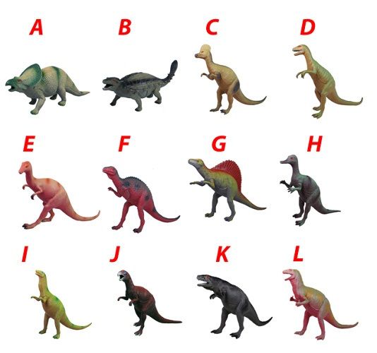 Vyber si svého oblíbeného dinosaura! Výšky dinosaurů se pohybují od 25 do 33 cm. Záleží jen na tobě, který z 12 druhů si vybereš.