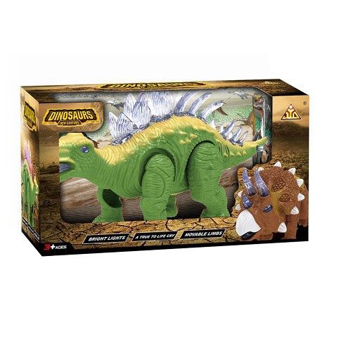 Vydej se na dobrodružnou cestu s dinosaurem do pravěkých dob. Po zapnutí začne dino chodit, vydává hrozivý řev a svítí. Délka dinosaura je 26 cm. Napájen je pomocí 3ks baterií typu AAA, nejsou součástí balení.
