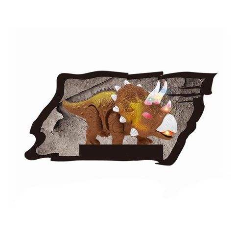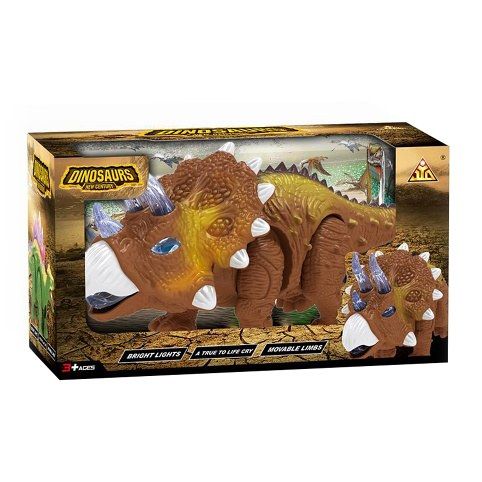 Vydej se na dobrodružnou cestu s tímto rohatým dinosaurem Triceraptopsem do pravěkých dob. Po zapnutí začne dino chodit, vydává hrozivý řev a svítí. Délka dinosaura je 26 cm. Napájen je pomocí 3ks baterií typu AAA, nejsou součástí balení.