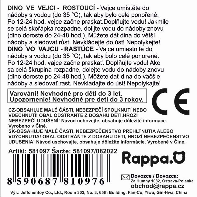 Vložte vejce do nádoby. Nádobu naplňte vodou tak, aby bylo vejce celé pod vodou. Po 12-24 hodinách začne vejce praskat. Pokud klesne hladina vody, vodu dolijte. Po 48 hodinách je dinosaurus vylíhnutý.