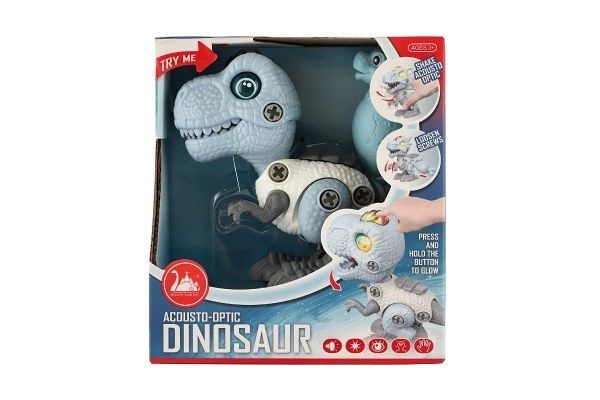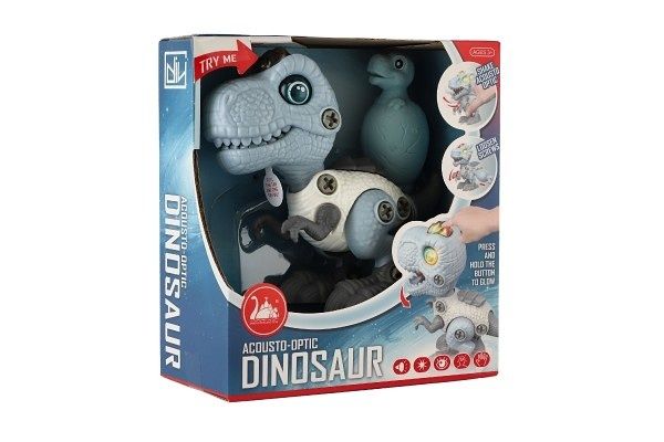 Dinosaurus šroubovací plast 12cm se šroubovákem na baterie se světle se zvukem v krabičce