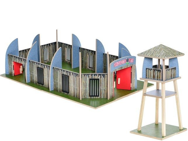 Dinoworld dinopark dřevěný 65,5x42x20cm s rozhlednou 34cm v krabičce