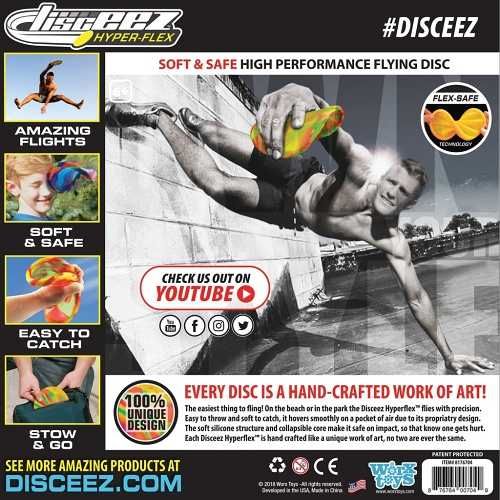 Bavte se venku i doma s těmito cool létajícími talíři. Super létají, bezva se chytají a mají cool design. Jsou vyrobené z měkkého gumového materiálu, díky kterému jsou velmi bezpečné a můžete si s nimi užít i spoustu legrace ve vodě. Házejte je. Chytejte je. Sbírejte je. Vyzvi své kámoše a zahrajte si Disceez golf nebo se trefujte do Disceez koše. Pro děti od 6 let.