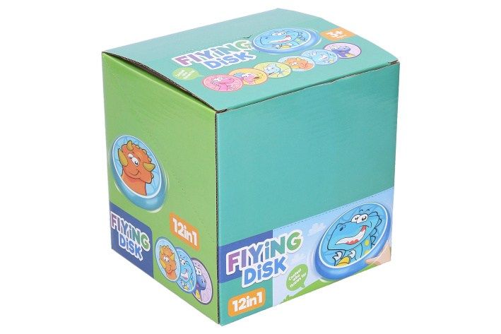 Disk házecí dino. Průměr 16 cm. Disky jsou měkké, z pěny. 12 ks display box. 6 variant - červená, fialová, oranžová, zelená, tmavě modrá, světle modrá.