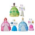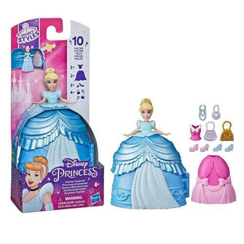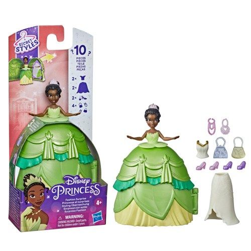 Plesové šaty těchto Disney princezen uvnitř skrývají celou šatní skříň včetně zradla. Každá sada obsahuje panenku, 2 oblečky, boty, doplňky a něco navíc. Vše můžete zabalit do pouzdra sukně a vzít s sebou pro hru na cestách. Sada pro jaro 2021 zahrnuje Ariel, Popelku a Tianu. Sada pro podzim 2021 zahrnuje Rapunzel a Bellu. Prodáváno samostatně.
