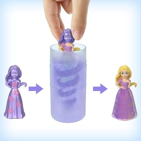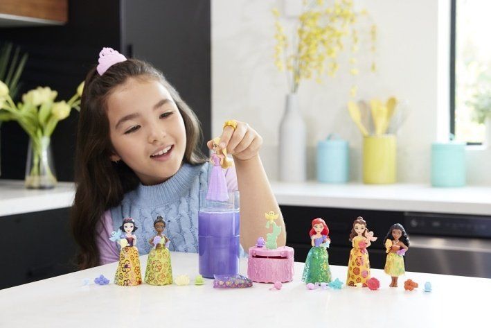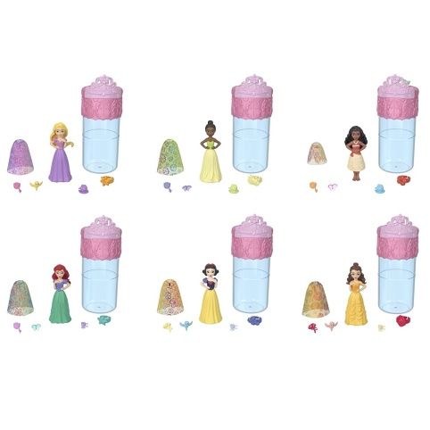 Tyto malé panenky s motivem zahradní party nabízí vzrušující zážitek při rozbalování díky technologii změny barvy Color Reveal™ a nečekanému počtu doplňků. Každé balení obsahuje malou panenku s překvapením Color Reveal™, například Ariel, Bellu, Vaianu, Lociku, Sněhurku a Tianu, u nichž přidání vody odhalí vzhled dané princezny. Překvapení zahrnují duhovou sukni z měkkého materiálu, doplňky na zahradní party, prsten a čelenku pro holčičku a víko, které slouží jako stůl na party.