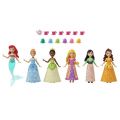 Tato kolekce šesti malých panenek Disney Princess a doplňků obsahuje oblíbené princezny a hrdinky z pohádek, jako jsou Locika, princezna Jasmína a Mulan. Panenky mají oblečky z měkkého materiálu s hvězdičkovým potiskem a tvarované živůtky, a set obsahuje více než 10 doplňků pro hru na královský čajový dýchánek.