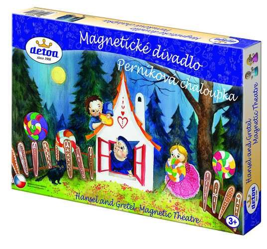 Magnetické divadlo Perníková chaloupka je výborná zábava pro malé i velké na motivy oblíbené pohádky. Ve figurkách je vlepený magnet který se přitahuje k magnetu ve vodítku. Hra rozvíjí dětskou fantazii a kreativitu při vymýšlení vlastních pohádkových příběhů. Výrobek splňuje požadavky EU na bezpečnost hraček a je vhodný pro děti od 3 let. Baleno v papírové krabici.